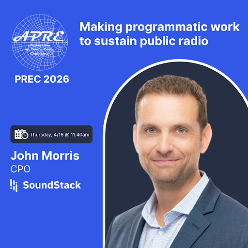 If you're in public media and attending the Association of Public Radio Engineers PREC show right before NAB, don’t miss SoundStack chief product officer John Morris on stage. “Making Programmatic Work to Sustain Public Radio” will cover an end-to-end engineering approach to effective advertising without disrupting the listening experience. New territory for public radio – can’t-miss session!